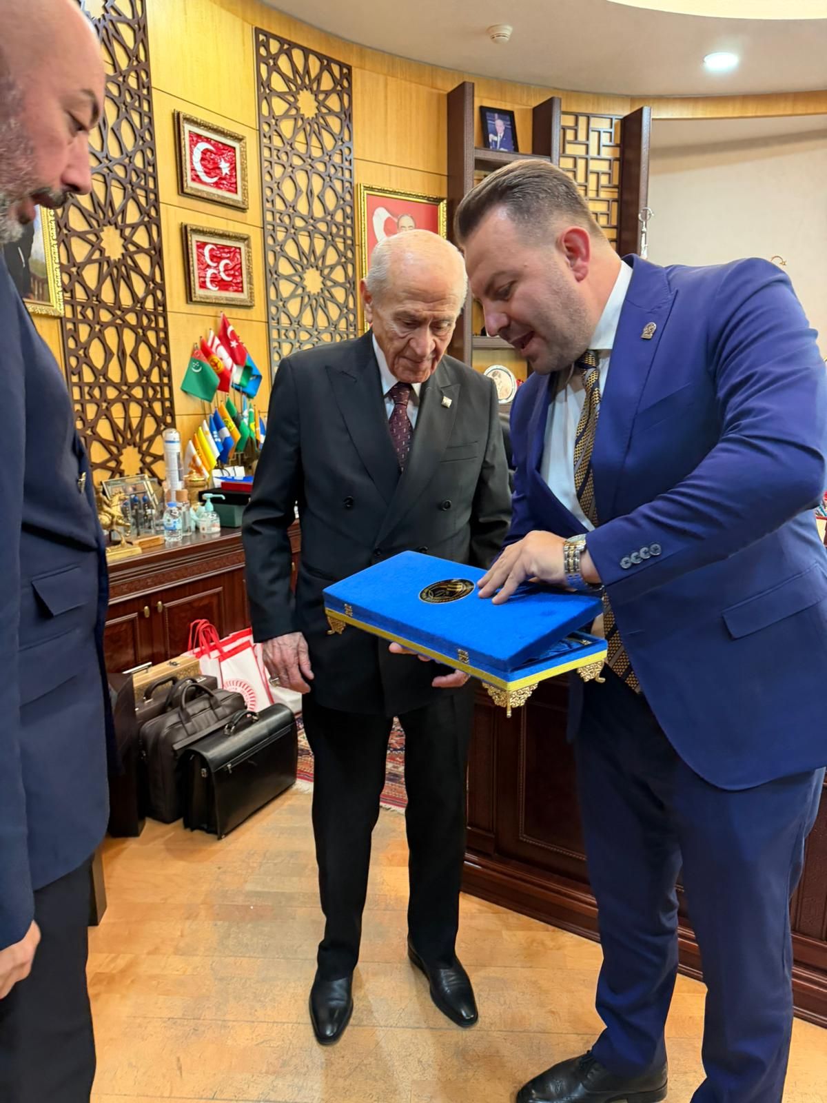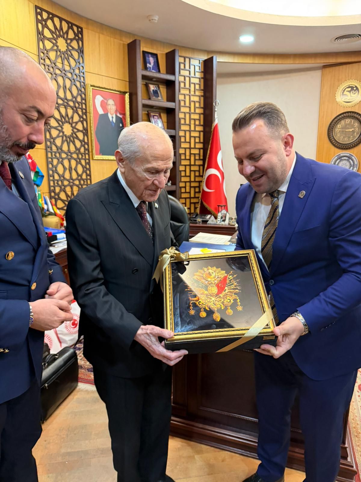 AFİDER Yönetim Kurulu Başkanımız Av. Coşkun Samancı ile Yönetim Kurulu Üyelerimiz Mert Yürekli ve İsmail İnan, Milliyetçi Hareket Partisi Genel Başkanı Sayın Devlet Bahçeli’yi makamında ziyaret etti. Ziyaret sırasında Sayın Bahçeli’ye İran Necef Taşı tespih takdim edildi. Misafirperverlikleri ve kıymetli sohbetleri için kendilerine teşekkür ederiz.
